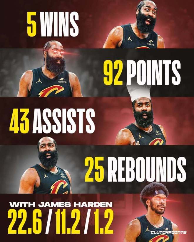 北京時間2月22日,美媒clutchpoints曬圖感慨哈登加盟騎士的效應,并配文如下——