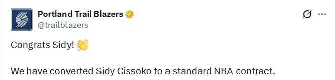 北京時間2月21日,波特蘭開拓者官方宣布,將西索科的雙向合同轉為正式NBA合同,他由此進入球隊15人常規賽大名單。據聯盟消息人士透露,開拓者和西索科簽約兩年,這份合同將持續至2026?27賽季。為給這位21歲前鋒騰出名額,開拓者裁掉了呂佩爾。