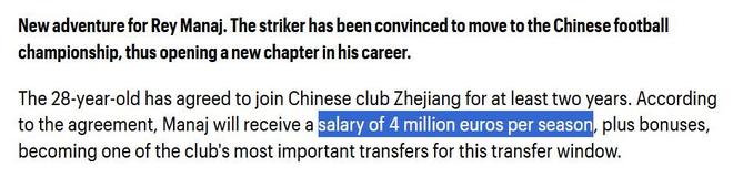 昨日,多家阿爾巴尼亞媒體曝出,阿爾巴尼亞國腳馬納伊同意加盟浙江隊,他將與球隊簽約兩年。有消息稱他的年薪可達400萬歐,并包含有獎金。