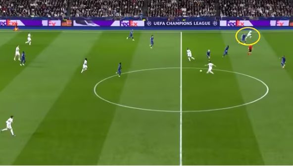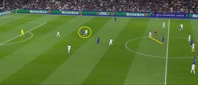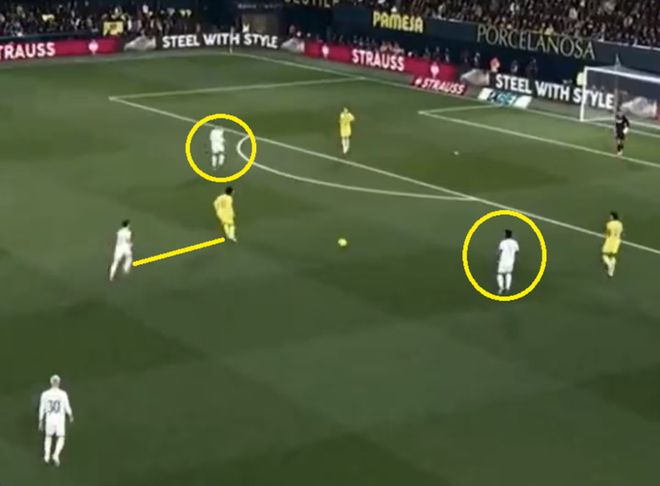 皇馬進攻時陣型變成1-4-1-4-1,球員在對方防線之間不停跑動換位,用橫向轉移和長傳球(這場有52次,比場均多7次)調動對手。