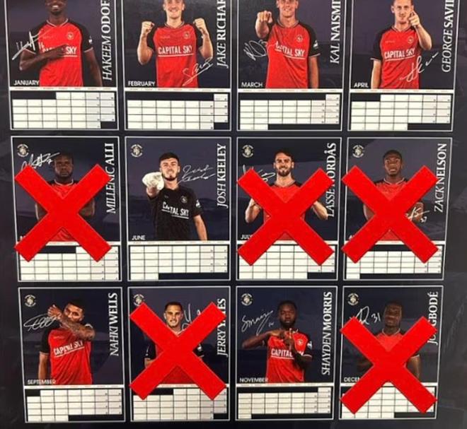 這五名球員原本分別是盧頓2026年日歷中5月、7月、8月、10月和12月的封面人物。