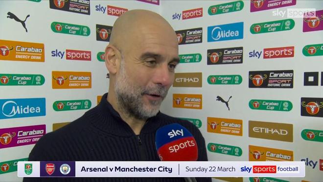 率隊以總比分5-1擊敗紐卡晉級英聯杯決賽后,曼城主帥瓜迪奧拉接受了天空體育的采訪。