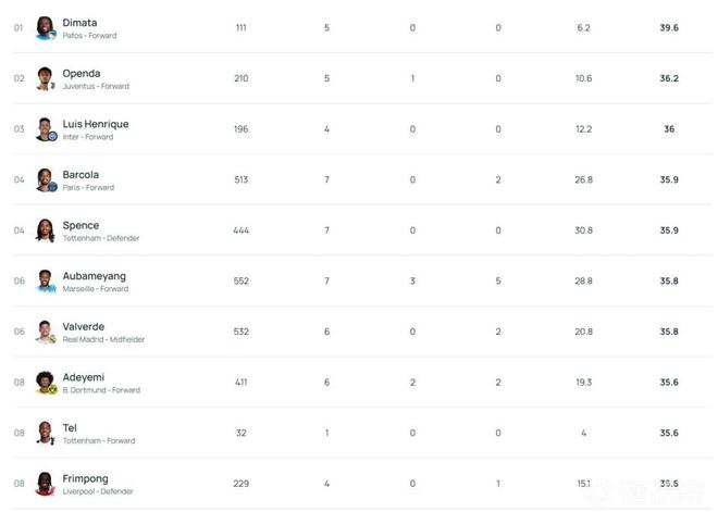 統(tǒng)計(jì)數(shù)據(jù)顯示,迪馬塔以39.6公里/小時(shí)的速度,成為本賽季歐冠聯(lián)賽中跑得最快的球員。據(jù)統(tǒng)計(jì),中國(guó)短跑名將蘇炳添的最快速度為42.2km/h,而博爾特為44.72km/h。