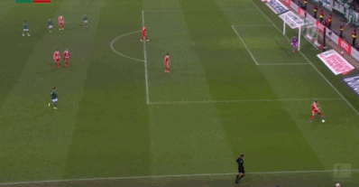 第29分鐘,凱恩回撤接應,一腳手術刀直傳打穿不萊梅的后防線,路易斯-迪亞斯左路高速插上,小角度射門被巴克豪斯撲出。