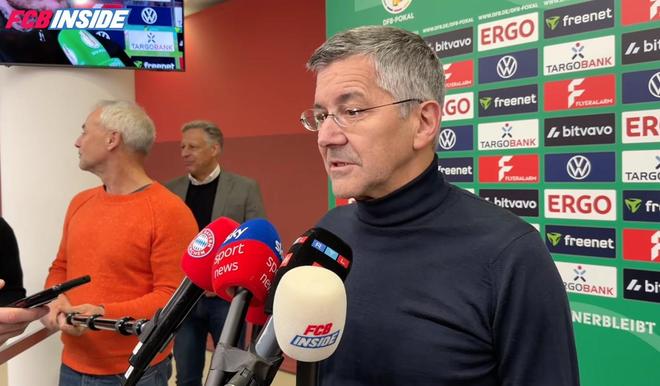 德國(guó)杯1/4決賽,拜仁2-0戰(zhàn)勝萊比錫,拜仁主席海納賽后在混采區(qū)接受了采訪。