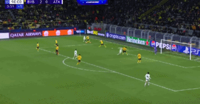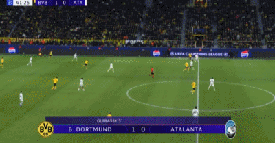 第42分鐘,吉拉西左路傳中,拜爾后點(diǎn)推射空門(mén)破門(mén),多特2-0亞特蘭大