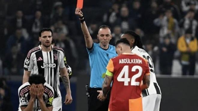 兩隊的首回合較量,尤文在客場2-5慘敗,已經命懸一線。然而回到主場的他們并沒有放棄,第36分鐘,造點,操刀主罰一蹴而就,尤文1-0領先。不過易邊再戰第49分鐘,尤文后衛凱利踩踏伊爾馬茲,主裁判先是出示黃牌,并兩黃變一紅將凱利罰下。但在VAR的提示下,他取消了黃牌判罰,而是選擇了直接出示紅牌。