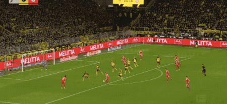 第32分鐘,多特蒙德的進攻簡單直接,斯文松傳中,拜爾背對球門,射門有些勉強。