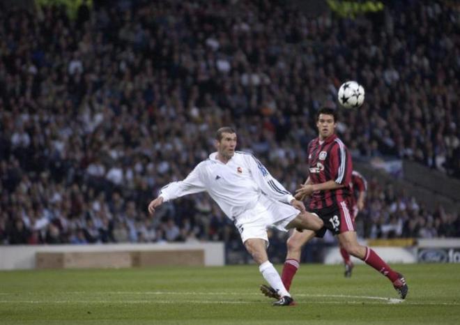 齊達內(nèi):這張照片拍的是2002年5月15日,在格拉斯哥舉行的歐冠決賽對陣勒沃庫森時我打進的那粒進球(比分2-1)。那一刻仿佛時間靜止,是一種懸停在空中的巔峰瞬間。正是這個進球,讓我的榮譽版圖得以完整。