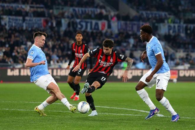 拉齊奧在前45分鐘的優勢明顯,米蘭僅在下半場才做出扳平比分的嘗試,但阿萊格里很難指望來自中場的火力:福法納未能將好狀態帶到羅馬,既沒有標志性的穿透直塞,也未能靠插上制造機會,而門前效率從不是他的強項;亞沙里頂替停賽的拉比奧先發,在進攻和對抗中提供的幫助完全無法與法國人相比,只是試圖待在莫德里奇身側擔任守序發牌器,且在一些關鍵的防守場景中并不令人放心。