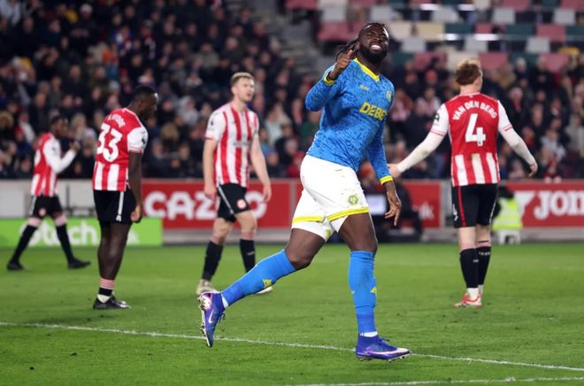 比賽一開始,主場作戰的布倫特福德迅速占據主動。第22分鐘,劉易斯·波特右路送出精準傳中,卡約德在禁區內高高躍起,力壓防守球員完成頭球破門,狼隊0-1落后。進球之后,布倫特福德攻勢更加兇猛。